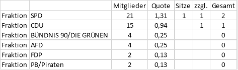 Demzufolge steht der SPD-Fraktion das Vorschlagsrecht für zwei Mitglieder und der CDU-Fraktion für ein Mitglied zu.